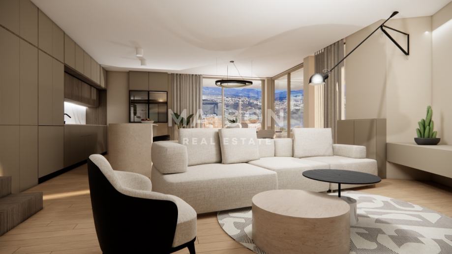 Stan ukupne površine 334,82 m² koncipiran je kao besprijekorno uravnotežen prostor suvremenog luksuza i funkcionalnosti. Središnji dio čini prostrani open space dnevni boravak s kuhinjom i blagovaonicom, osmišljen kao reprezentativna, ali topla zona za boravak i druženje. Velike staklene stijene povezuju interijer s vanjskim prostorima, osiguravajući obilje prirodnog svjetla i osjećaj prozračnosti.