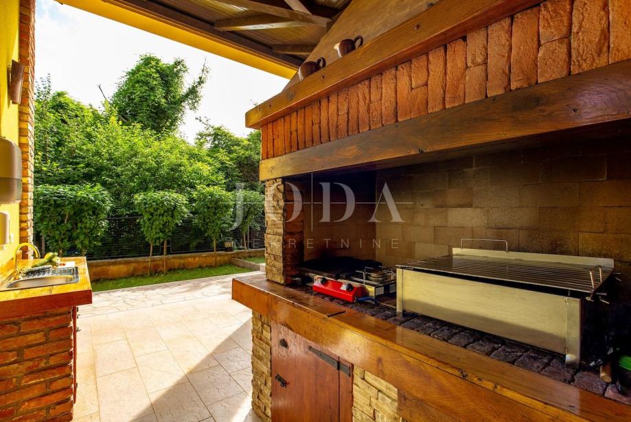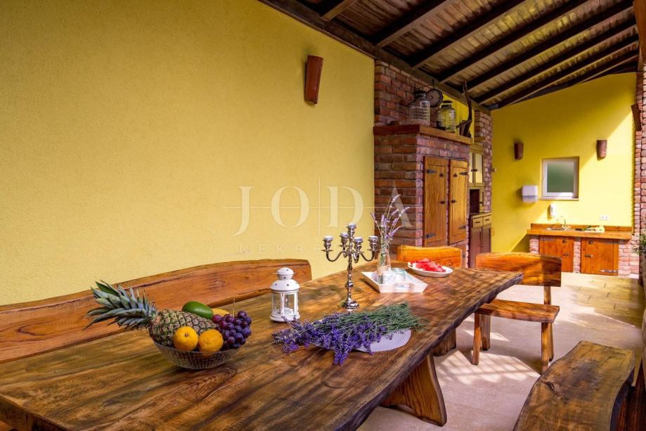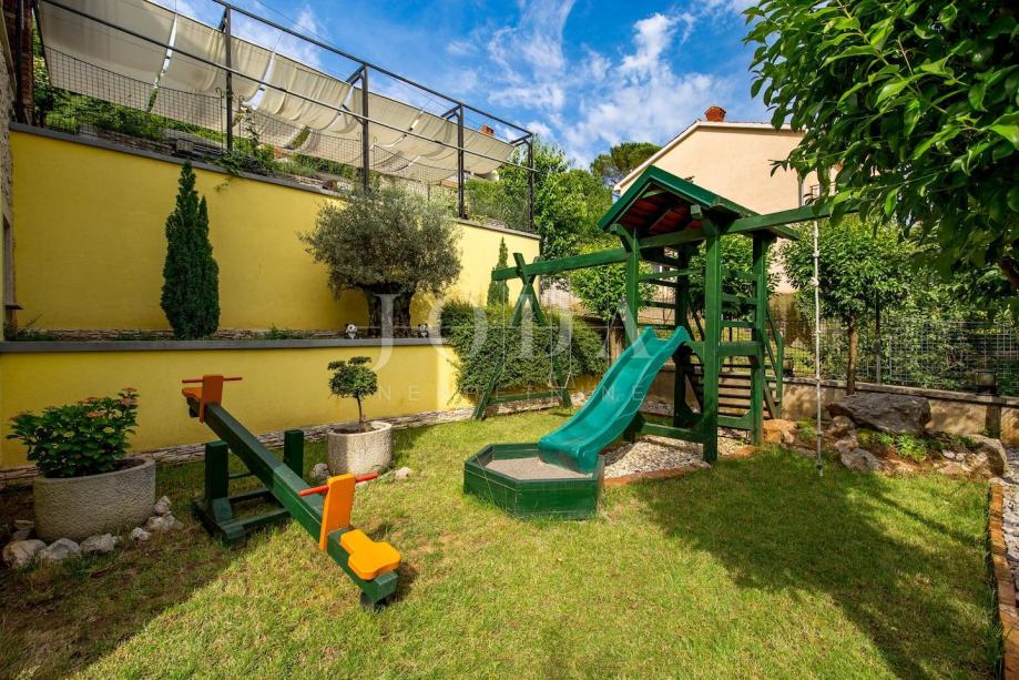 Unutar uređene okućnice je bazen i jacuzzi te ograđeni parkirni prostor za više automobila.