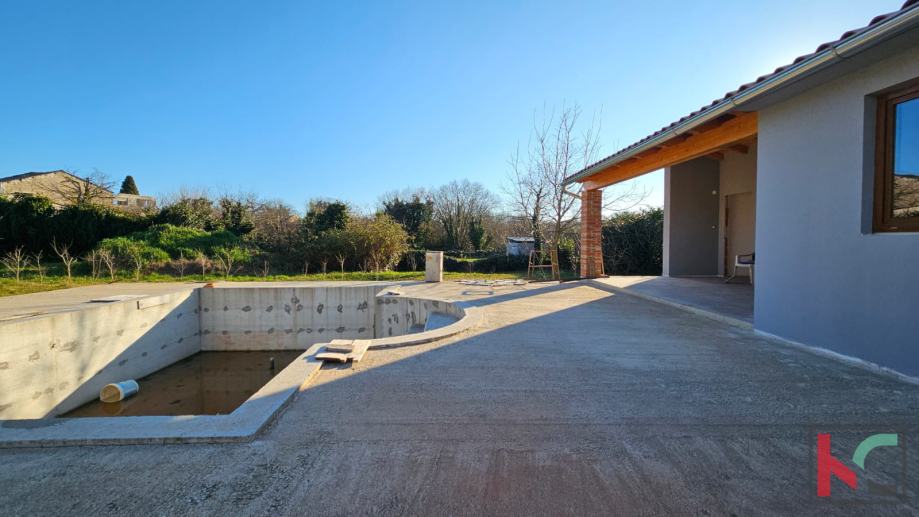 Vani je gredama natkrivena terasa koja je predviđena kao prostor za vanjsko opuštanje, bazen i uz njega vanjska kuhinja, spremište i kupatilo.