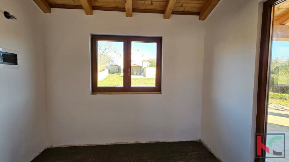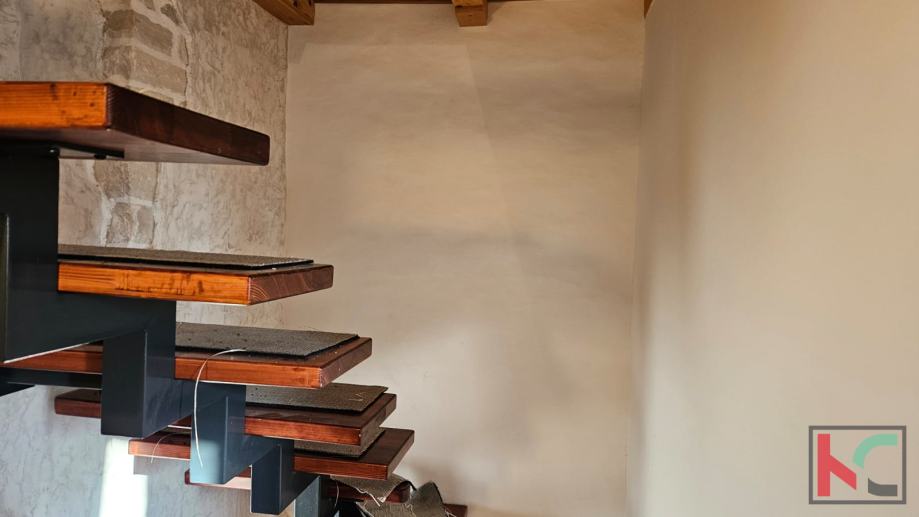 Kuća ima 66m2 na tri etaže, s drvenim stepenicama i međukatnim konstrukcijama. Koliko je to bilo moguće, zadržao se istarski "štih". Planirana je kuhinjica, dnevni boravak i po katu dvije sobe sa vlastitim kupatilima.
