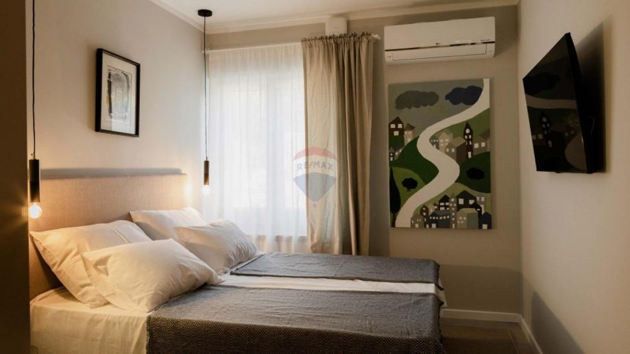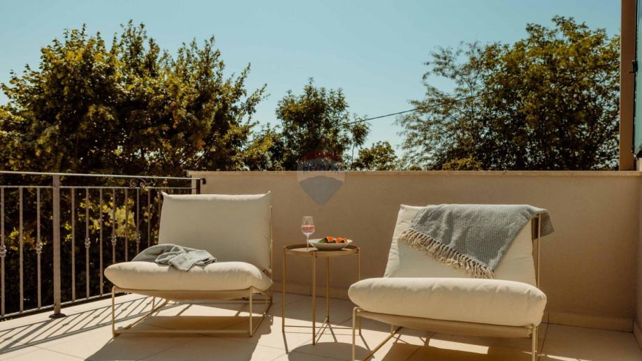 Vanjsko stepenište vodi do gornjeg kata, potkrovlja gdje se nalaze još dvije prostorije koje bi se dale urediti u radnu sobu, igraonicu za djeci, mali studio ili nešto drugo po potrebama i željama budućeg vlasnika.