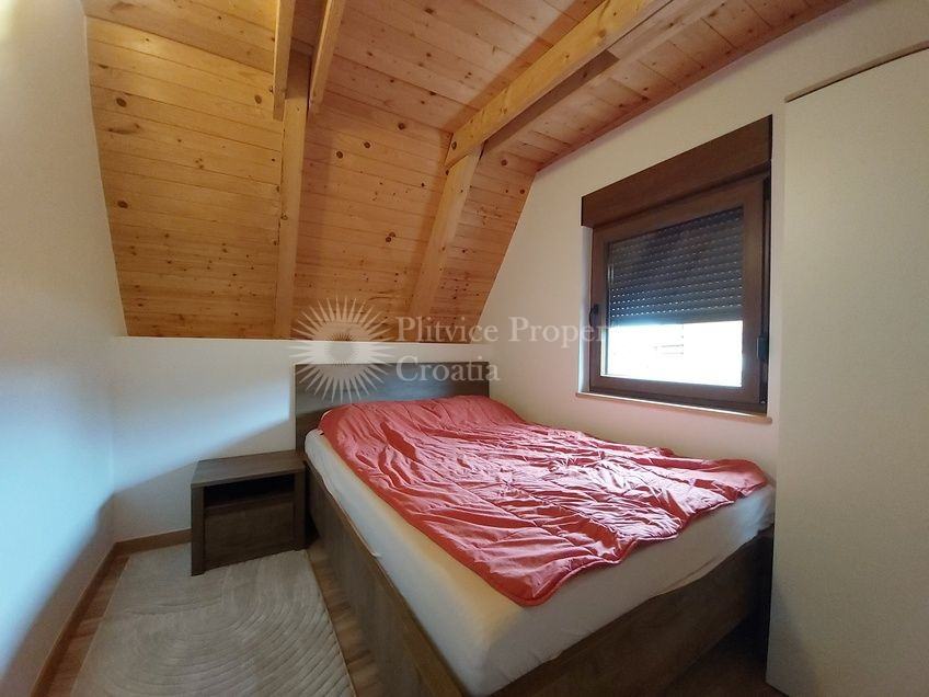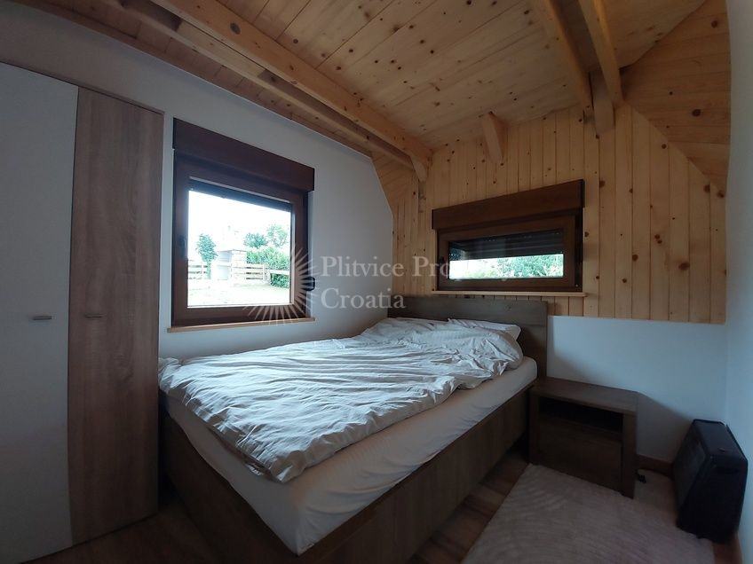 U prizemlju se nalazi otvorena kuhinja i dnevni boravak s direktnim pristupom prostranoj terasi s pogledom na rijeku Koranu - idealan prostor za opuštanje ili zabavu. Na istom katu nalaze se kupaonica i dvije spavaće sobe.