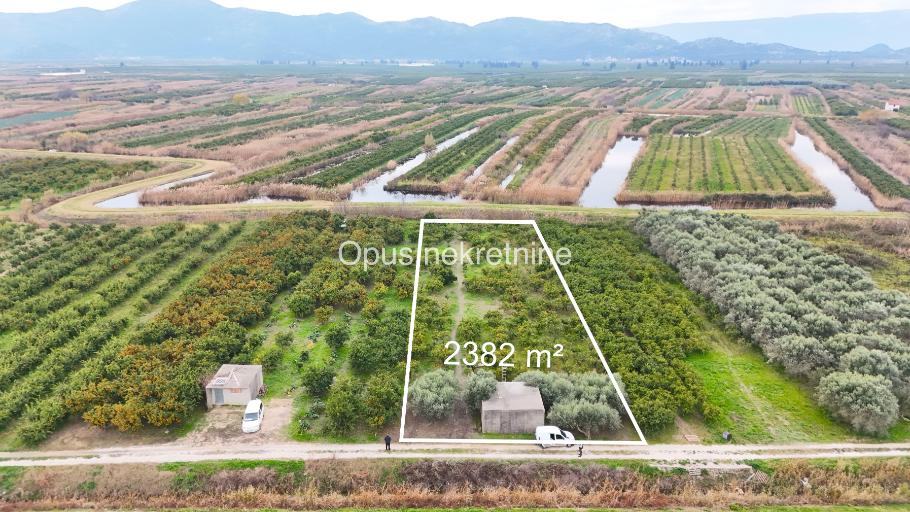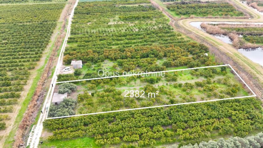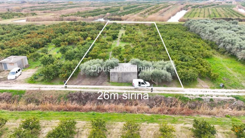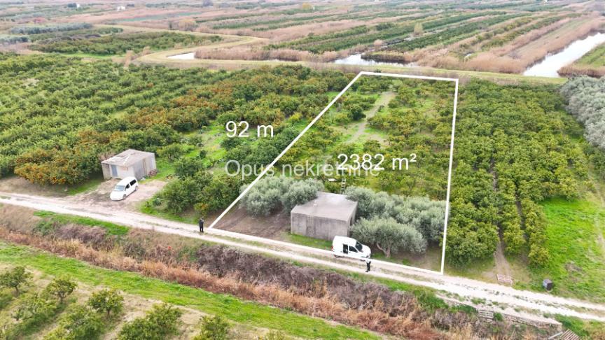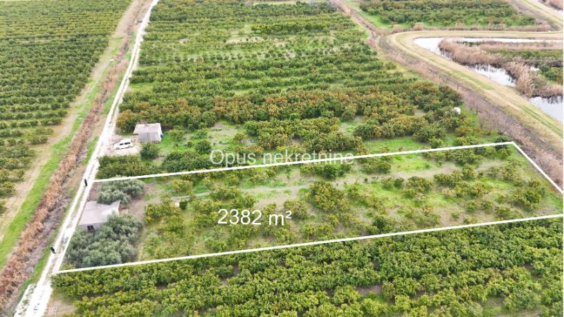 Prodaje se poljoprivredno zemljište ukupne površine 2383 m2 na mirnoj lokaciji okruženoj poljoprivrednim parcelama i pristupačnim navodnjavanjem. Trenutno se na zemljištu nalaze nasadi maslina i mandarina, smokava, šipaka, klementina i naranača. Zemljište je izvrsna prilika za sve poljodjelske kulture zbog svoga plodnog tla, mogućnosti navodnjavanja. Prilaz autom.