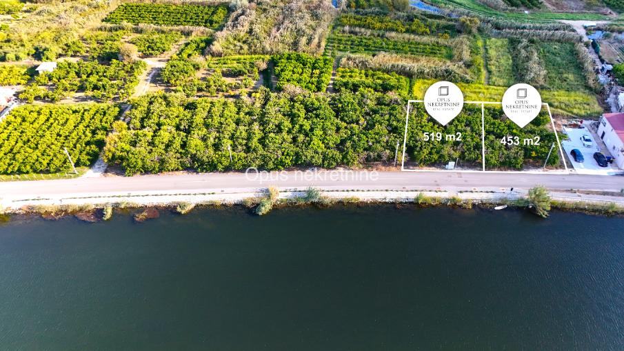 Prodaje se građevinsko zemljište ukupne površine 972m2 podijeljeno na 2 parcele od 453m2 i 519m2 u mjestu Vlaka, općina Slivno. Zemljište se nalazi odmah uz prilazni put, pripada svijetlo žutoj boji, gradnja moguća odmah. Predivan pogled na rijeku. Izvrsna prilika za obiteljski dom kao i za kuće za najam u blizini mora.