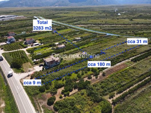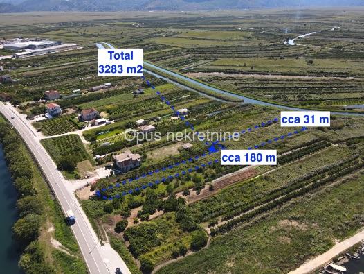 Prodaje se poljoprivredno zemljište površine 3283 m2 uz glavnu magistralu u mjestu Opuzen. Zemljište je izvrsna prilika za sve poljodjelske kulture zbog svoga plodnog tla, mogućnosti navodnjavanja i transparentnog prilaza.