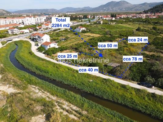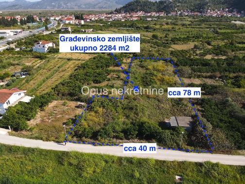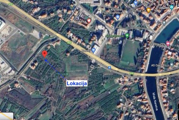 Prodaje se građevinsko zemljište 2284 m2 na atraktivnoj lokaciji u blizini igrališta i centra grada Opuzena. Prednji dio zemljišta cca 900 m2 pripada izgrađenom dijelu građevinskog zemljišta, dok stražnji dio zemljišta cca 1400m2 pripada neuređenom djelu građevinskog zemljišta. Na zemljištu se nalazi i gospodarski objekt od 20 m2 koji služi kao ostava za alat. Zbog svoje lokacije i dimenzija izvrsna je prilika za više stambenih jedinica na mirnoj lokaciji u blizini centra grada