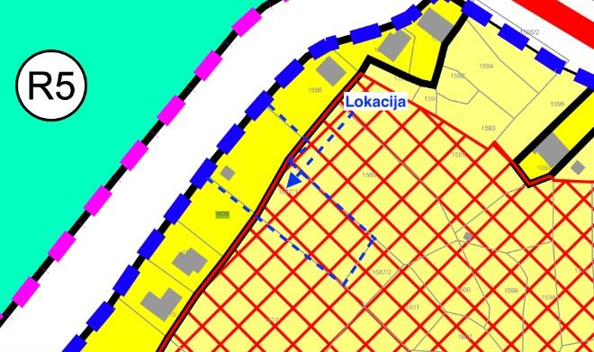 - Prednji dio cca 900 m2 pripada izgrađenom dijelu građevinskog zemljišta, tamno žuta boja