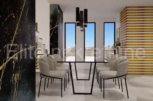 Vila ima 3 sobe, 3 kupaone, gostinjski wc, dnevni boravak, kuhinju sa blagovaonom, spremište te terasu.