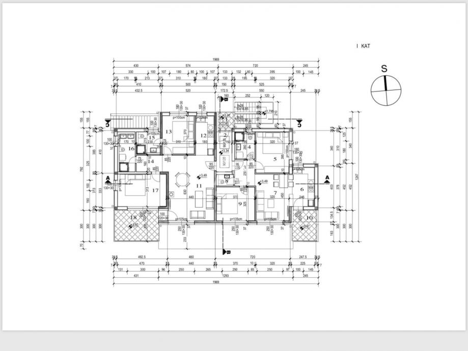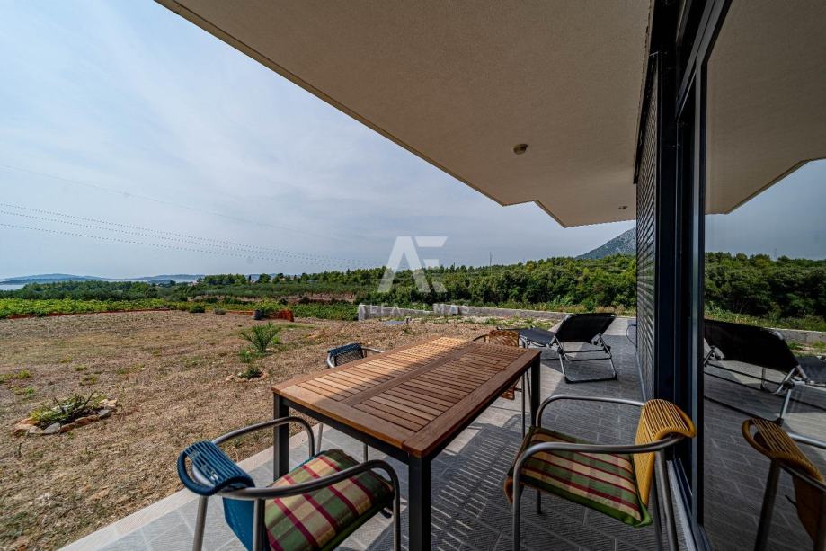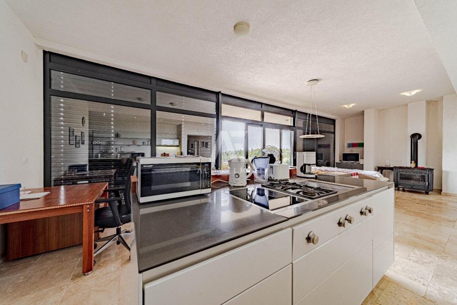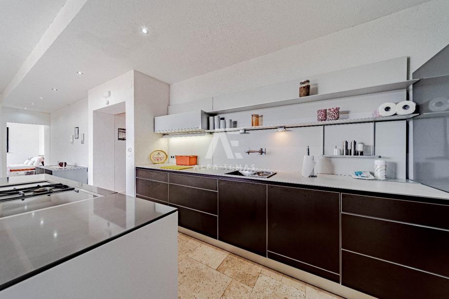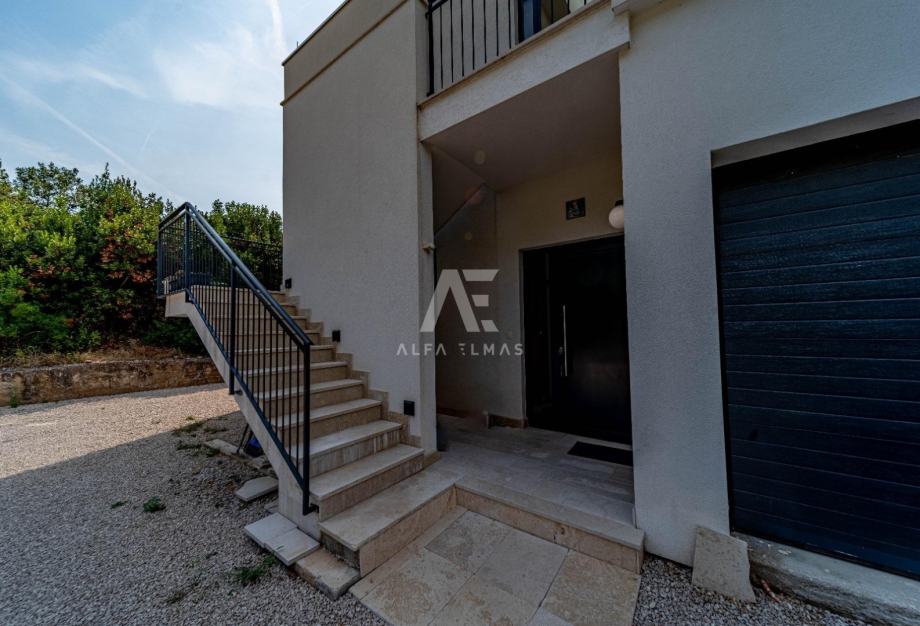 Na katu se nalaze dva potpuno opremljena apartmana, svaki sa svojim vanjskim prostorom. Manji apartman površine oko 65 m² sastoji se od kuhinje, dnevnog boravka, dvije spavaće sobe, kupaonice, dodatnog WC-a i terase. Veći apartman od približno 75 m² nudi dvije spavaće sobe, dvije kupaonice, dnevni boravak s kuhinjom te prostranu terasu od oko 50 m², idealnu za boravak na otvorenom.