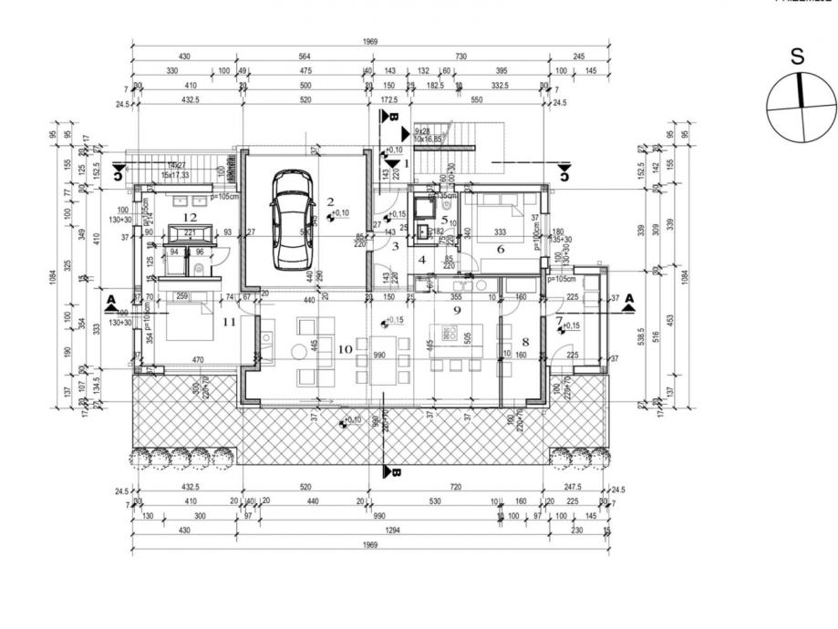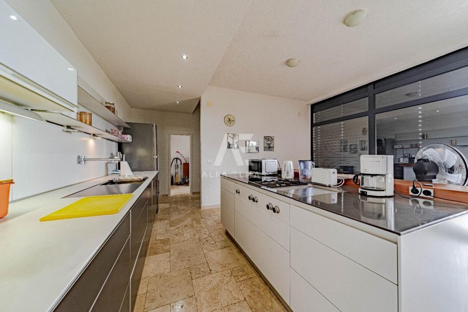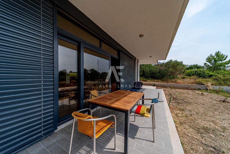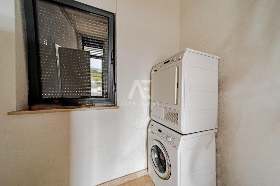 Prizemna etaža površine oko 150 m² u potpunosti je uređena i namještena te nudi ugodan prostor za svakodnevni život ili najam. Sadrži dvije spavaće sobe, dvije kupaonice, kuhinju s blagovaonicom, dnevni boravak i dodatni sanitarni čvor. Prostor je osmišljen tako da pruža komfor tijekom cijele godine.