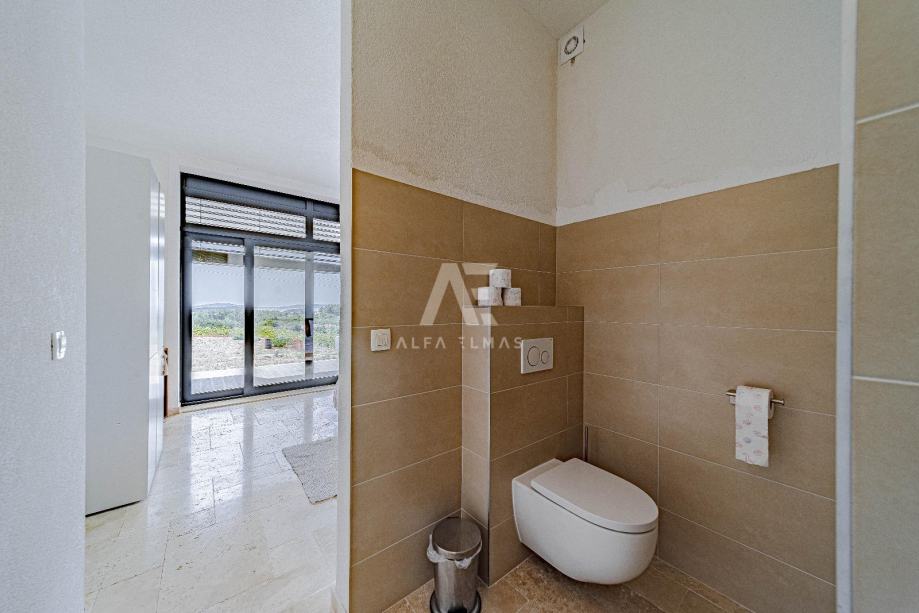 Kuća je opremljena podnim grijanjem putem dizalice topline, uz mogućnost ugradnje solarnih kolektora. Korišteni su kvalitetni materijali, uključujući keramiku iz Italije, kamene podove i travertin, dok aluminijska stolarija s roletama dodatno doprinosi energetskoj učinkovitosti i trajnosti objekta.