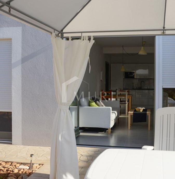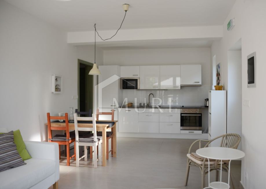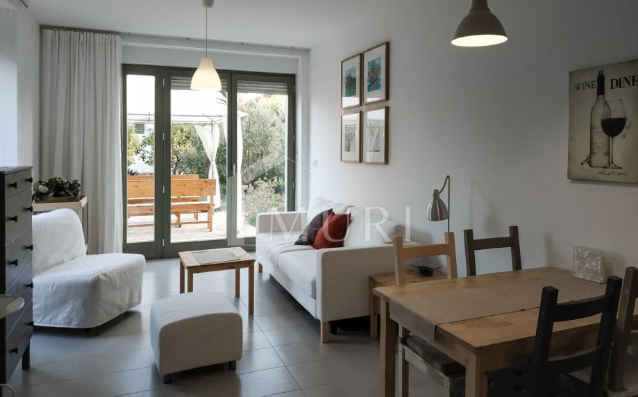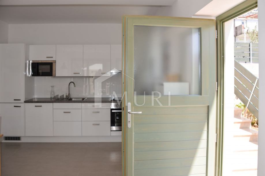 Iako stan nema pogled na more, blizina plaže i svih sadržaja u kombinaciji s privatnim vrtom i odvojenim ulazom čini ovu nekretninu izuzetno atraktivnom i rijetkom na tržištu. U neposrednoj blizini nalaze se trgovina, banka, kafići, restorani, marina, ljekarna i škola – sve dostupno pješice.