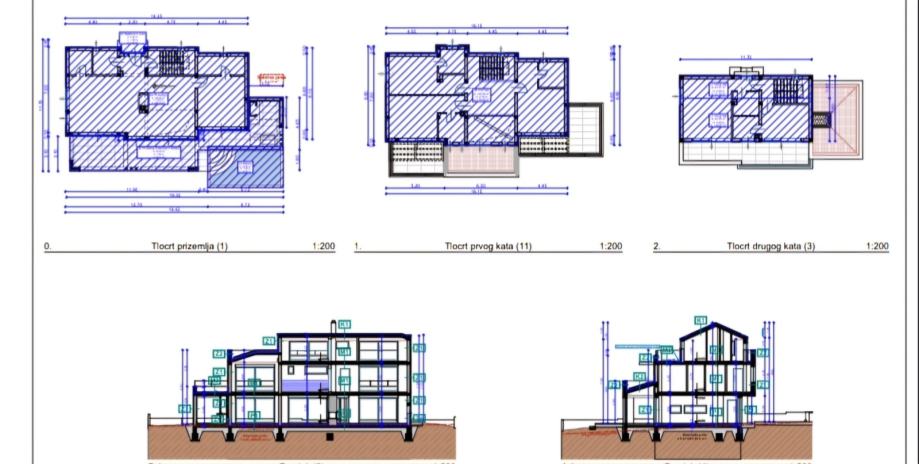 1. kat : 3 sobe sa kupaonama , kojih 2 imaju terase (netto površine 128m2 )