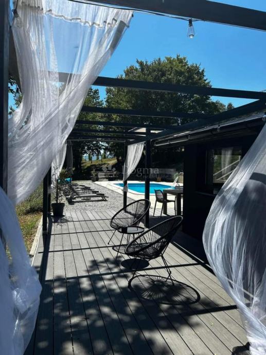 Kuća je površine sto i trideset kvadrata, s terasama i sunčalištem oko kuće i bazena. Sam bazen ima trideset i dva kvadrata a na okućnici se još nalazi i nadstrešnica od četrdeset kvadrata gdje je smješten roštilj s prostorom za blagovanje na otvorenom.
