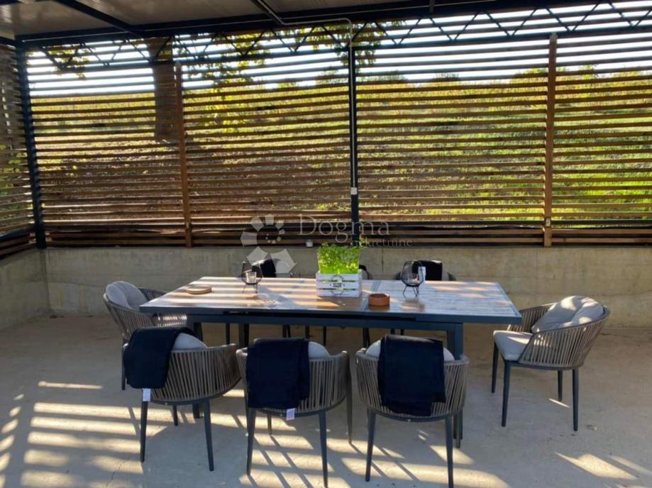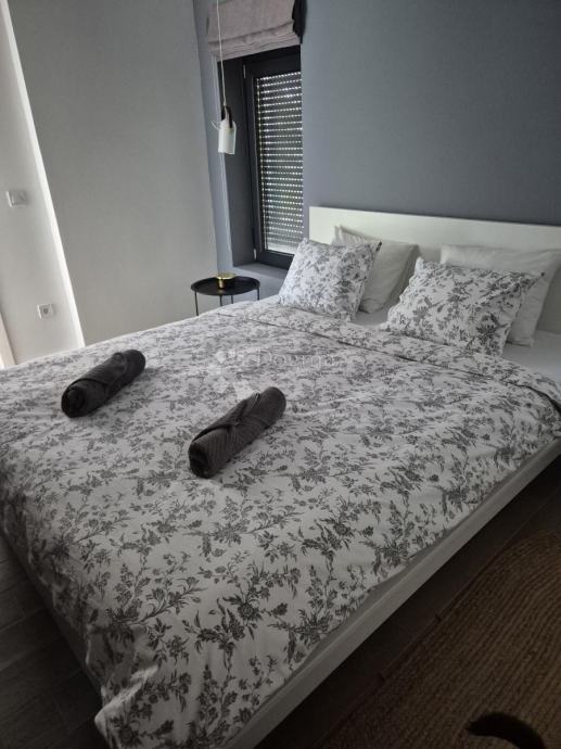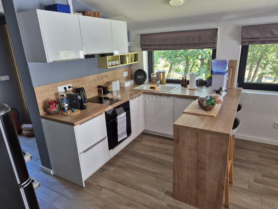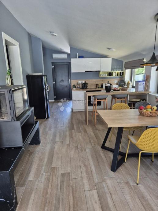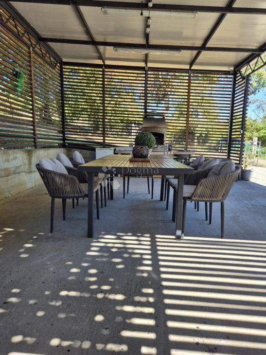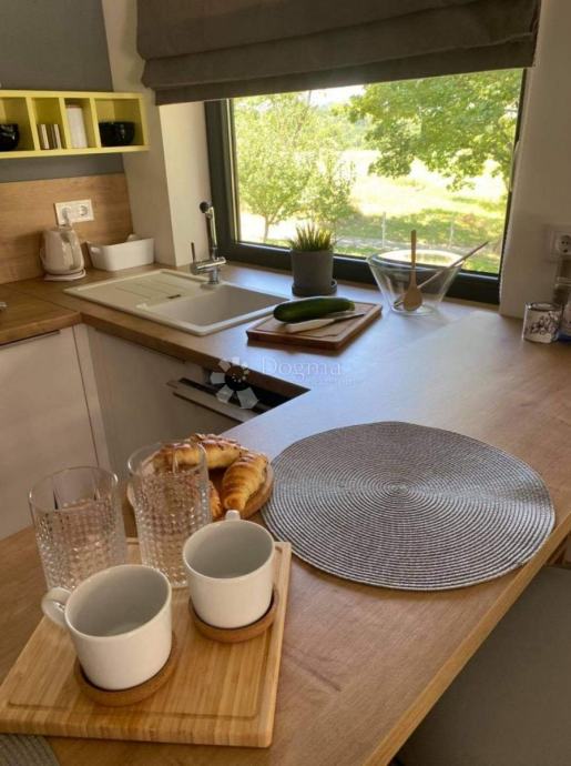 Sav namještaj je rađen po mjeri a za kuću je rađen projekt interijera po kojem je ista rađena. Kompletno je namještena i opremljena i kao takva se i prodaje.