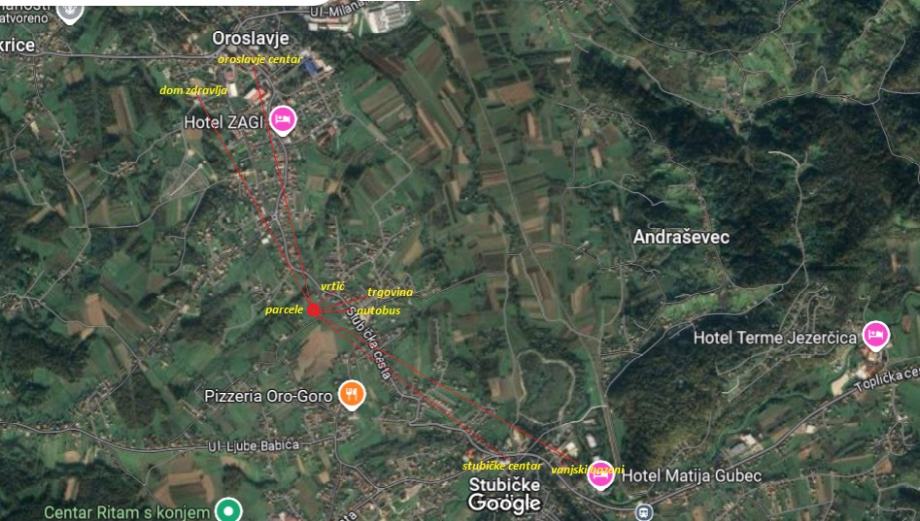svi priključci uz parcele,prekrasan pogled na Sljeme,na pola puta između Oroslavja
