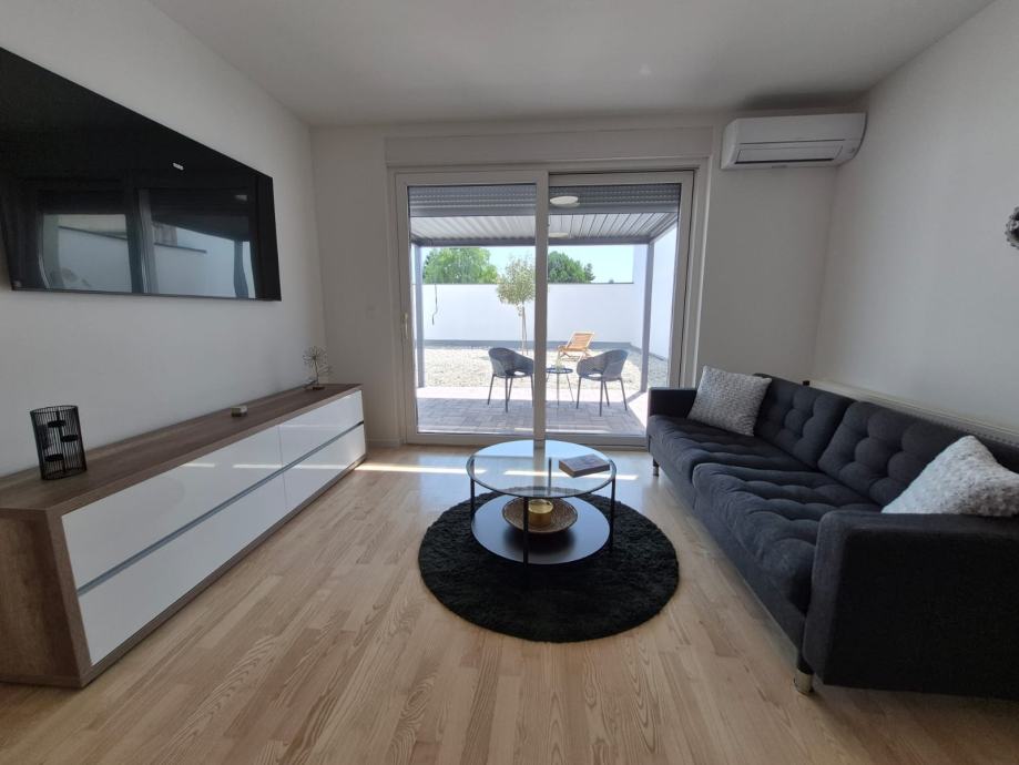 Stanu pripada vrt sa terasom i pergolom i natkriveno parkirno mjesto.