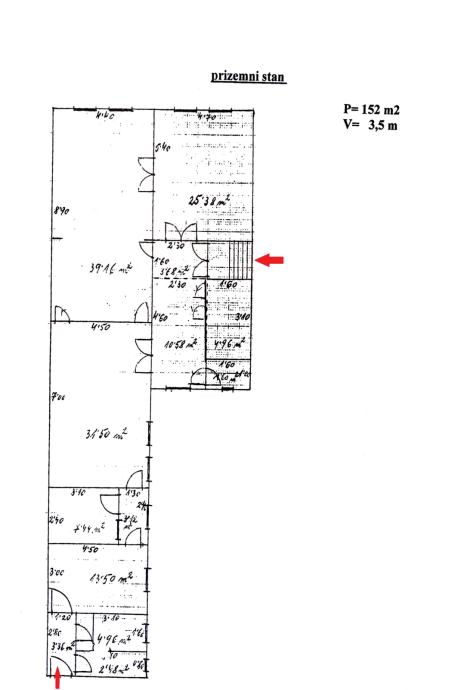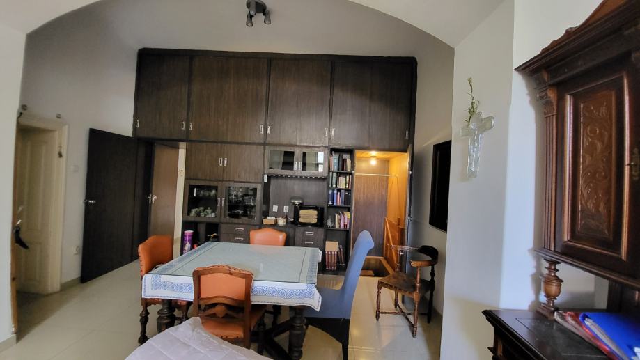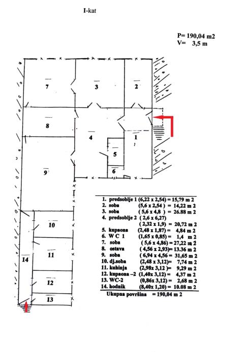 Kat ima 195 m2, dva ulaza, 4 sobe, 2 predsoblja, kuhinju, kupaonu i 2 WC-a i veliku ostavu.