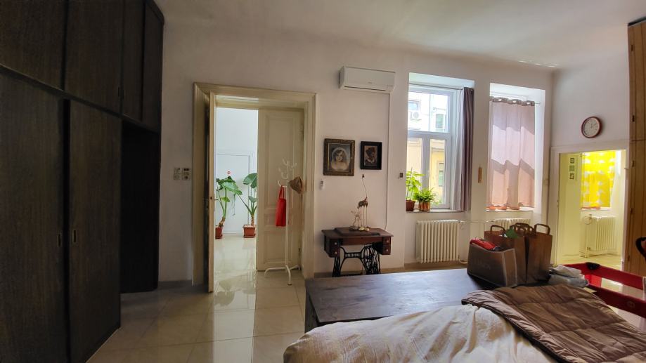 A one-storey house for sale in the very center of Osijek. In the immediate vicinity of the main market, across from the court, near the main post office, the private Polyclinic and the eye department of the KBO, and the Faculty of Law, Economics, Philosophy and Science. The house was built in 1900 and is under monument protection. It is located on a plot of land of 655 m2 with a street frontage of 12.9 m. It has a vehicular entrance, two garages and a canopy through which you can enter your own garden of 10x12 m2. Additional, free (!) parking space in front of the car entrance that belongs to this house number. Renovated courtyard facade and roof, which is visible in the photos.