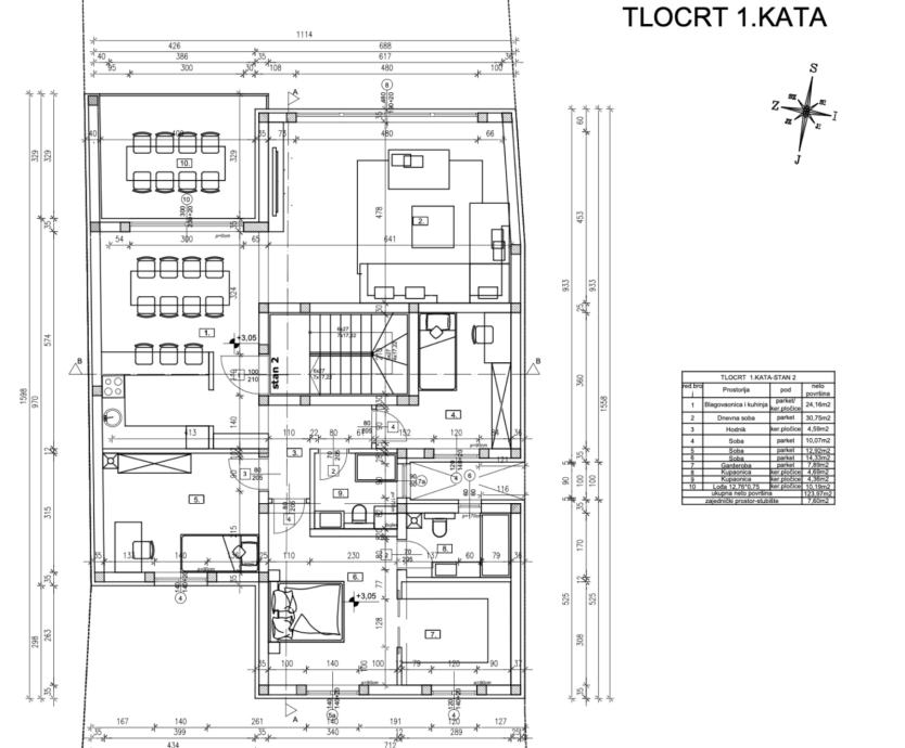 Prodaje se moderan četverosoban stan na 1 katu u Donjem gradu, Osijek.Stan se sastoji od:prostranog dnevnog boravka (30 m²),blagovaonice i kuhinje (24 m²),tri spavaće sobe (10, 13 i 14 m²),hodnika,dvije kupaonice,garderoba 8 m²lođa 13 m²Ukupna zatvorena površina stana iznosi 124...