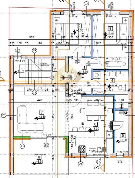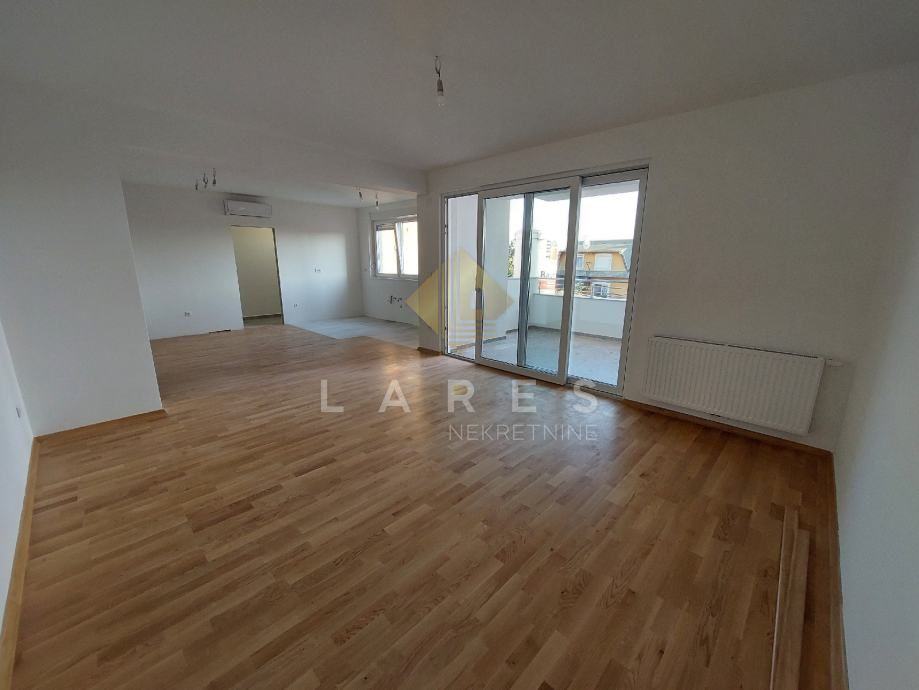 Prodaje se moderni trosobni stan na 1. katu (82,10m2 stambenog prostora + lođa 13,45 m2, tj. obračunskih 92,18m2) stambene zgrade u centru Donjeg grada.