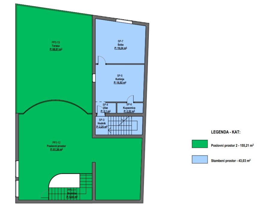 KAT: sastoji se od poslovnog prostora i terase, ukupne neto korisne površine 155,21 m2.