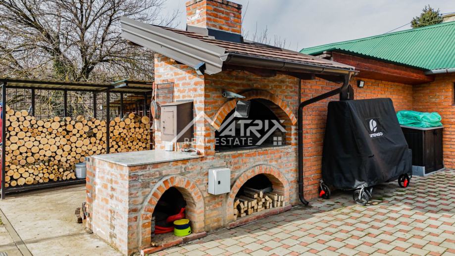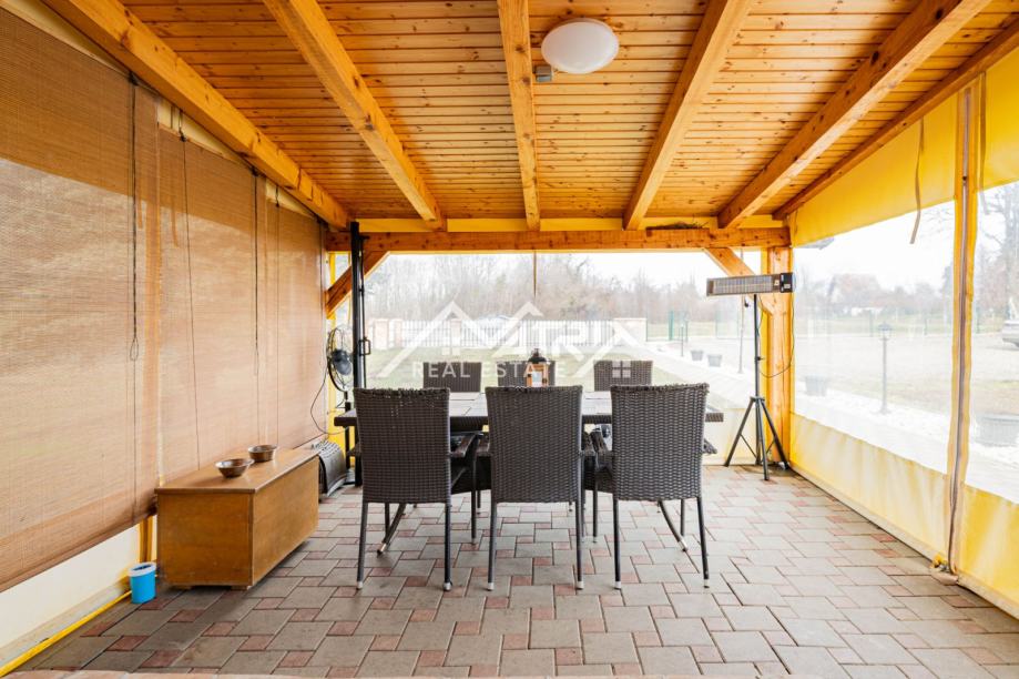 U mirnom zelenom okruženju nadomak Aljmaša, u osječkoj okolici, nalazi se moderno uređena i potpuno opremljena vikendica idealna za bijeg iz grada, vikend druženja ili kao manja investicija za najam. Stambeni dio površine 35 m² funkcionalno je organiziran i pruža sve potrebno za ugodan boravak tijekom cijele godine. Ulaz vodi na natkrivenu i grijanu terasu koja prirodno postaje središnje mjesto okupljanja, a zatim u modernu kuhinju s blagovaoničkim dijelom te urednu, komfornu dnevnu sobu. Nekretnina ima spavaću sobu i kupaonicu, a dodatnu praktičnost daje spremište smješteno iza kuće. Posebna vrijednost ove vikendice je prostrano zemljište ukupne površine oko 3.200 m² koje osigurava privatnost, prostor za rekreaciju i dodatne sadržaje. U stražnjem dijelu parcele nalazi se bazen za osvježenje u toplijim mjesecima, kao i zidani roštilj za druženja na otvorenom. Ako tražite vikendicu kod Aljmaša s velikim zemljištem, bazenom i uređenim interijerom, ova nekretnina nudi odličan omjer funkcionalnosti, mira i potencijala.