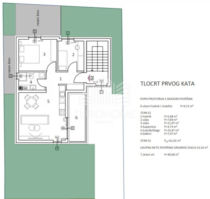 Ukupno: 61,01 m² + mogućnost vrta 49,00 m²