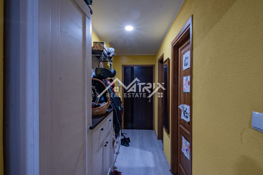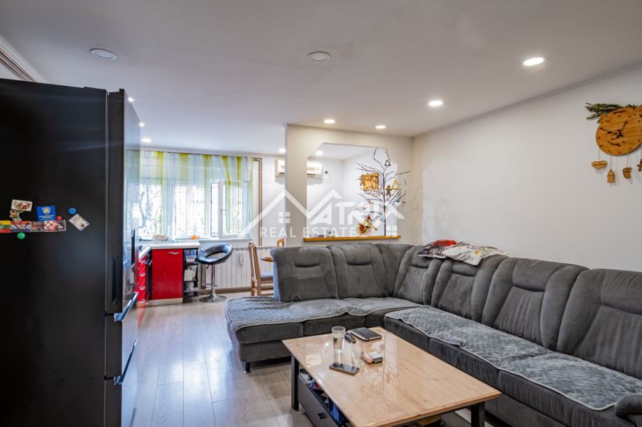 Nekretnina je kompletno renovirana 2014. godine (struja, voda, podovi, zidovi), uključujući izolaciju stropa i spušteni strop s rigipsom. Dodatno su postavljene nove instalacije struje i vode, ugrađena je PVC stolarija, grijanje je plinsko, a podne obloge su kombinacija laminata i keramike. Stan ima i jednu klimu te provučen optički internet, što ga čini praktičnim i spremnim za moderan stil života.