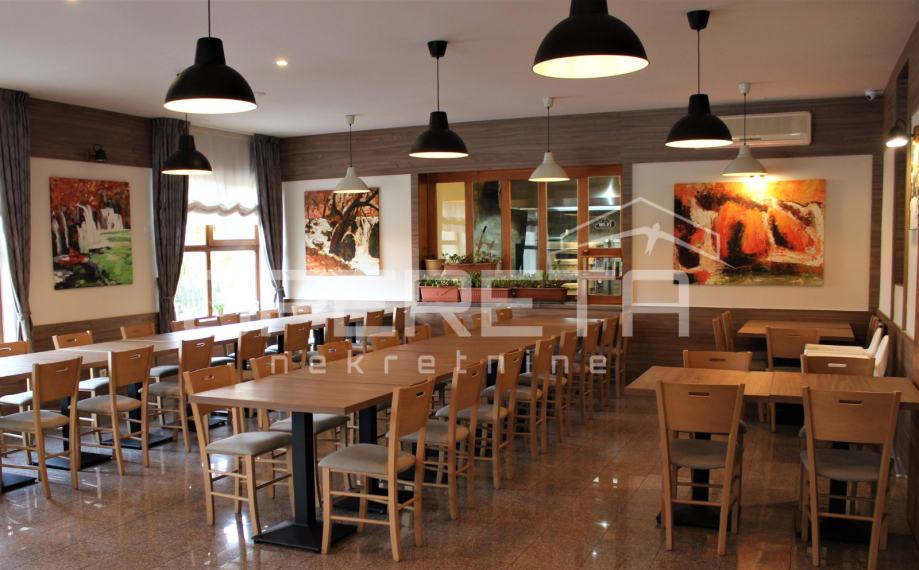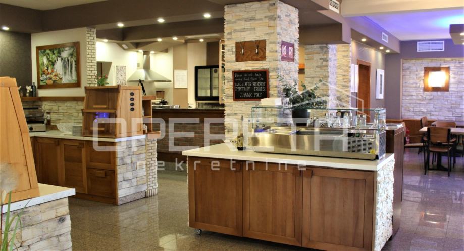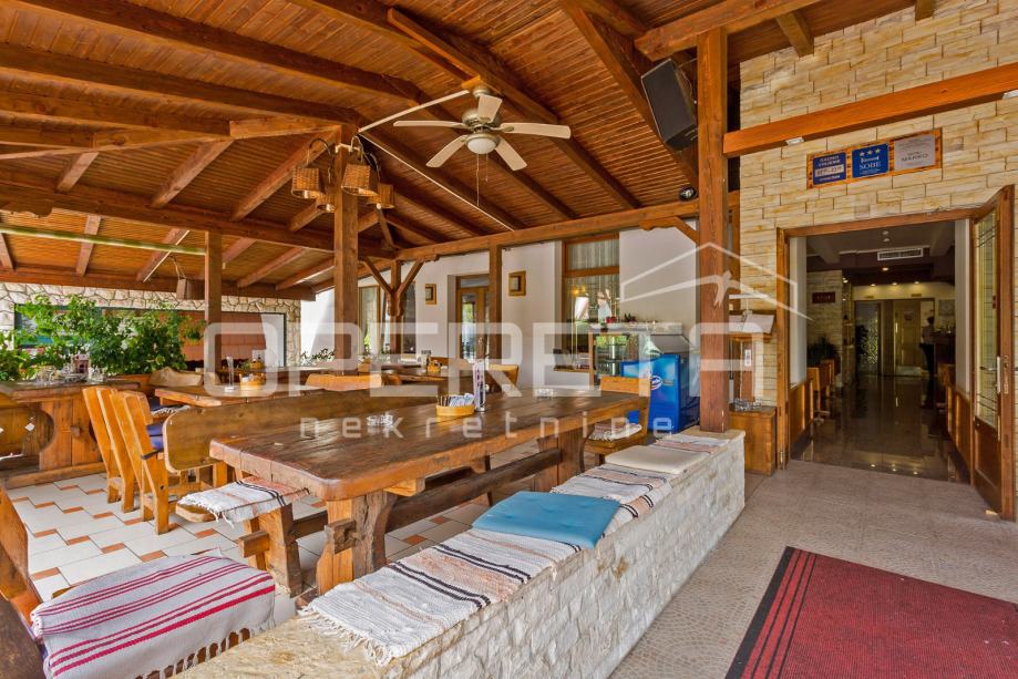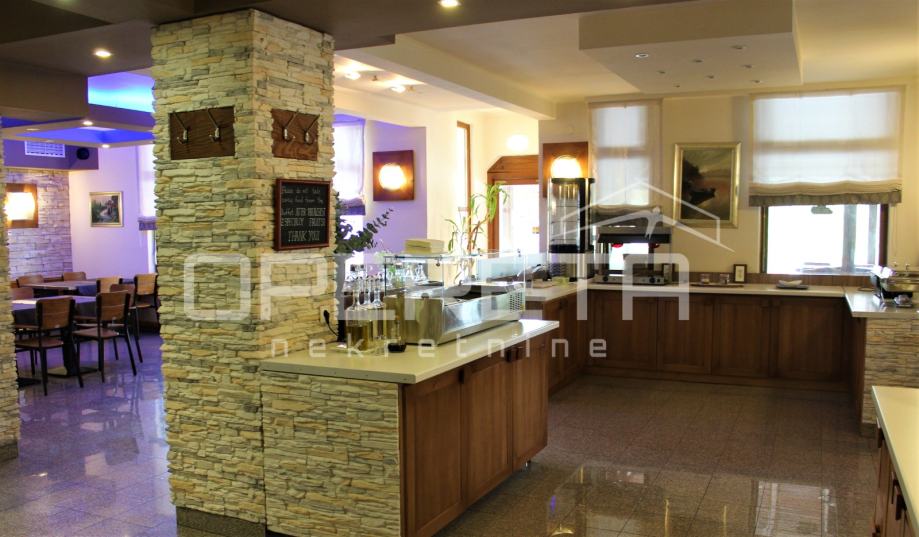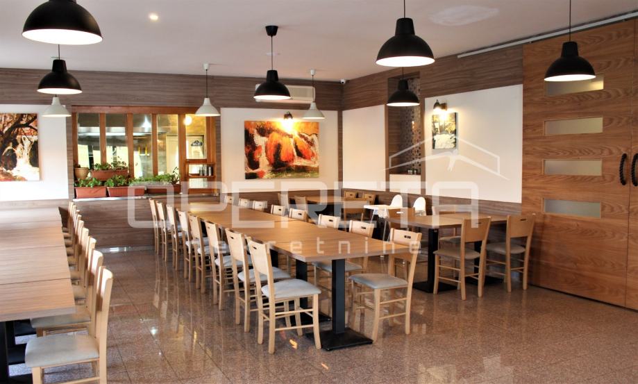 Restoran je u funkciji i sadrži 2 sale, buffet aranžman, veliku natkrivenu terasu, šank, te muški i ženski wc. Jedna dvorana služi kao konferencijska dvorana i može se odvojiti od druge. U stražnjem dijelu restorana nalazi se prostrana profesionalna kuhinja. U podrumu su garaže, rashladne prostorije i nekoliko sustava centralnog grijanja (pelet, drva i ulje).