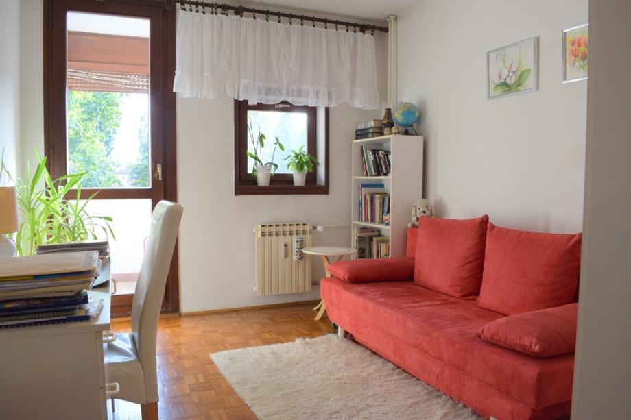 Prodaje se 3 sob stan na 3. katu stambene zgrade bez lifta. Stan se sastoji od dnevnog boravka, blagovaonice, kuhinje s ostavom, 2 spavaće sobe, lođe, kupaonice, wc-a, ulaznog hodnika. Stanu pripada ostava na tavanu zgrade. Zgrada ima ostavu za bicikle u prizemlju. Parking u ulici se ne naplaćuje.