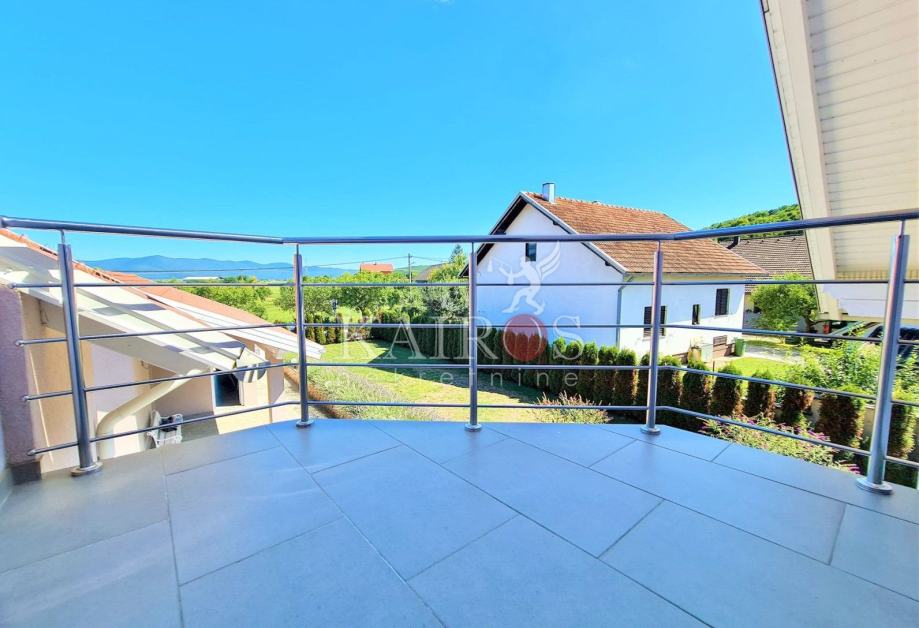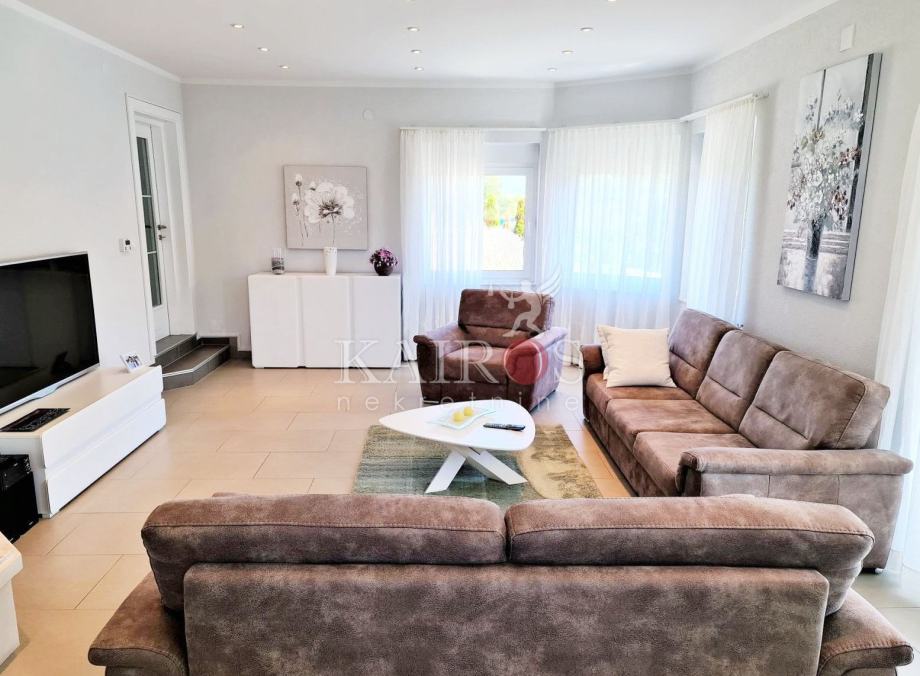 Prizemlje se sastoji od ulaznog hodnika, velikog dnevnog boravka iz kojeg se izlazi na lijepu natkrivenu terasu s garniturom za sjedenje, luksuzne kuhinje s blagovaonicom i ostavom, jedne spavaće sobe, toalet za goste, vešeraj, te stepenište za kat i za podrum.