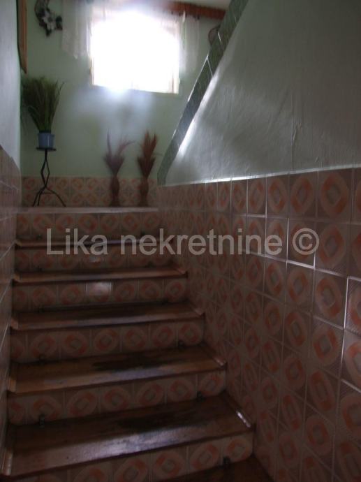 OTOČAC, centar - stan u kući na I. katu u Vatrogasnoj ul., koji se sastoji od hodnika, kuhinje sa blagavaonom, dnevnog boravka, 2 veće sobe, jedne manje sa izlazom na terasu, kupaonom sa wc-om, balkonom i stepenicama za tavan koji pripada stanu. Stolarija drvena, grijanje na drva - peć, svi priključci, potrebno uređenje... Uz stan se prodaje i 399 m2 dvorišta sa starijom dvorišnom zgradom površine 36 m2 kojoj je također potrebna adaptacija... Blizina centra, škole, pošte, policije, trgovine,...