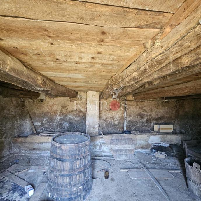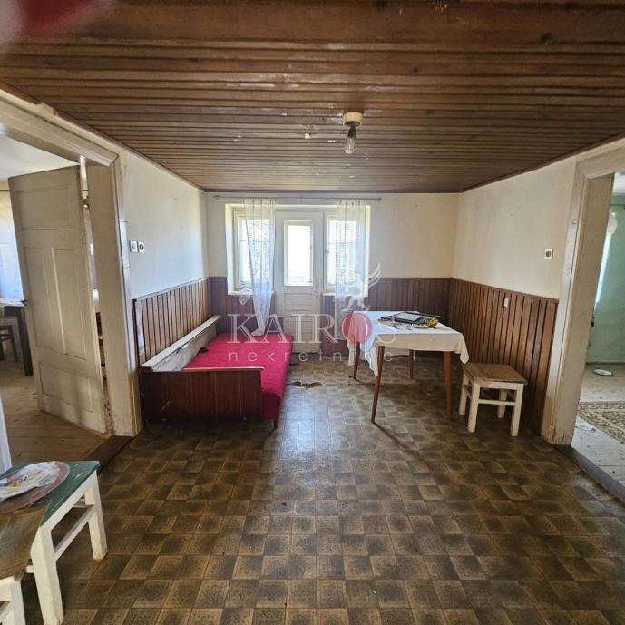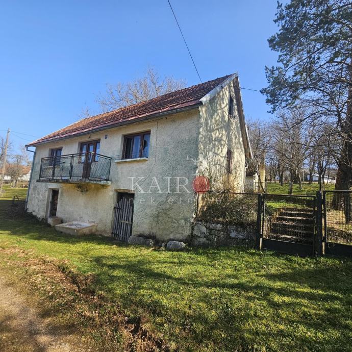 OTOČAC, okolica, prodajemo kamenu, samostojeću kuću koja se sastoji od suterena (dvije konobe svaka sa svojim ulazom) i visokog prizemlja koje se sastoji od kuhinje s dnevnim boravkom, kupaonice, hodnika i dvije spavaće sobe. U dvorištu kuće nalazi se ljetna kuhinja (cca 15 m2) i natkriveni otvoreni objekt cca 30 m2. Iza kuće je voćnjak, okućnica je površine 735 m2. Kuća se nalazi na mirnoj lokaciji, na 6 km od grada Otočca.