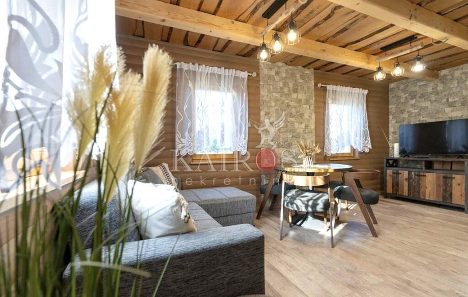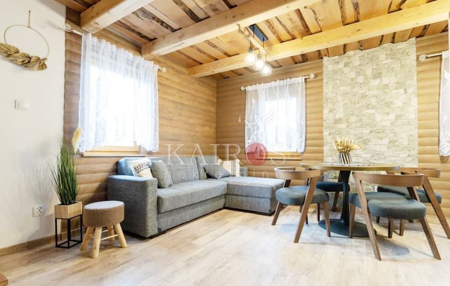 Na samo 4 km od Otočca, smještena je ova lijepa drvena kuća površine 60 m2, koja se sastoji od prizemlja i visokog potkrovlja, na parceli od 450 m2. Prvi susjedi su na udaljenosti od 100 m, kuća smještena na lijepoj lokaciji okružena poljima, livadama i šumama - mir i tišina, prekrasan krajolik. Mogućnost za razne aktivnosti npr. centar za rekreaciju NA 4 km, teniski tereni su samo 4 km udaljenosti, mogućnost ribolova na 200 m udaljenosti.