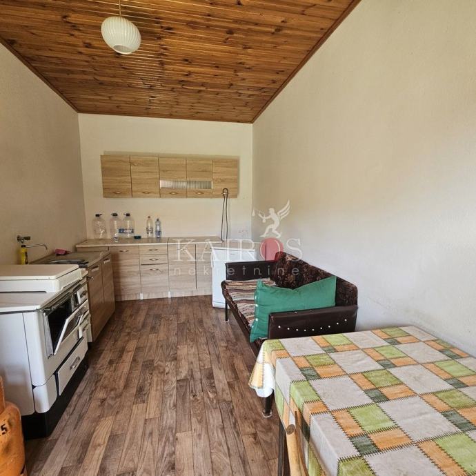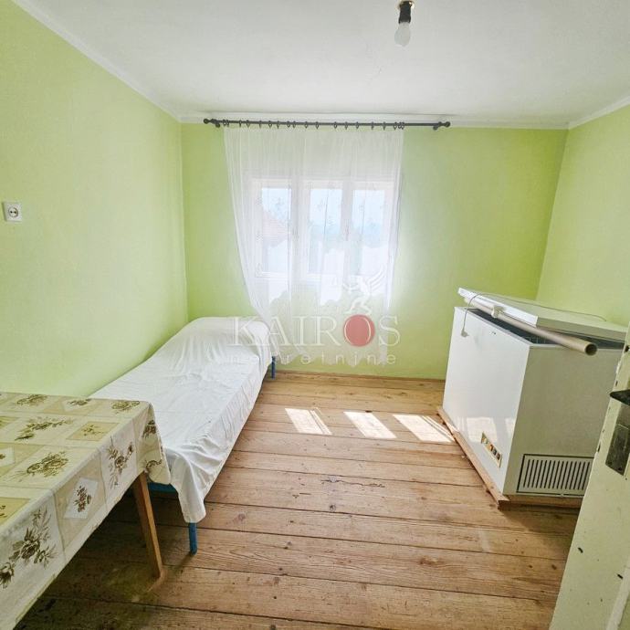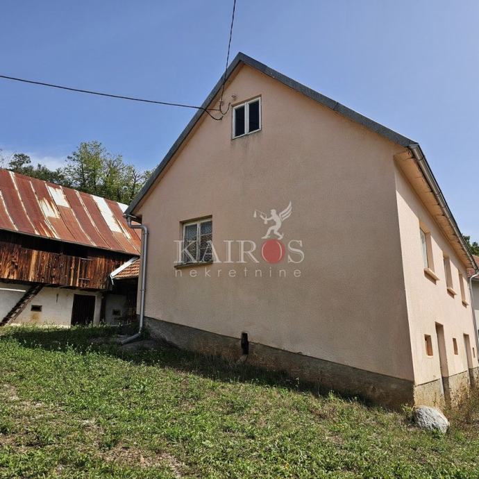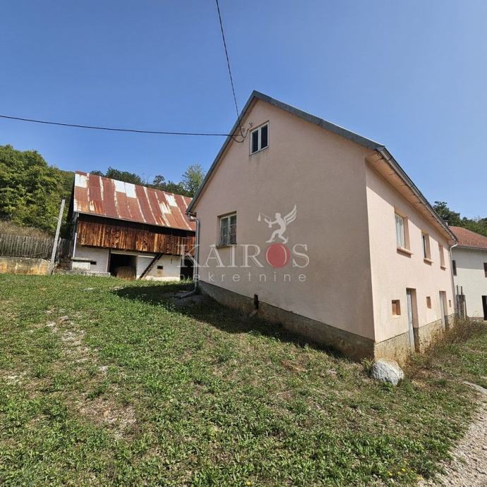 OTOČAC, okolica, prodajemo samostojeću kuću površine 100 m2 (suteren - konoba, prizemlje - stan, visoko potkrovlje - tavan). Kuća je u funkciji, ima struju, vodu iz šterne (hidrofor; u gradnji je gradski vodovod koji bi kroz godinu i pol trebao doći do sela).