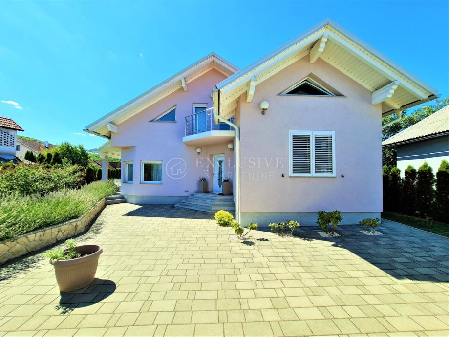 Ispred kuće se smjestila prostrana garaža u koju komotno stanu dva automobila, a iznad koje se nalazi i visoko potkrovlje koje može služiti za spremište. Za garažu se također drži i još jedna prostorija u kojoj se smjestio wc te spremište/radiona. Pokraj garaže ima prostora za parkirati još 3 automobila. U dvorište i na prostranu okućnicu se ulazi uz garažu, gdje postoje dva ulaza, kao i kroz garažu.