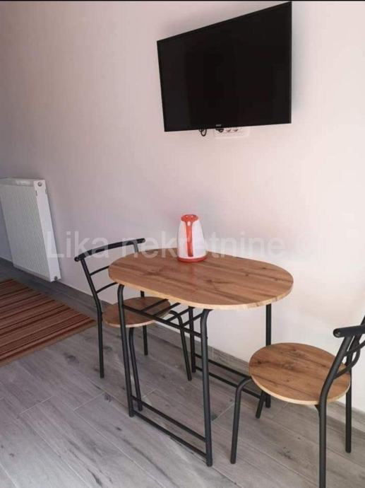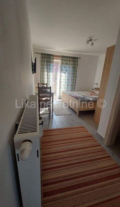 OTOČAC - Stjepana Radića, soba 20 m2 s kupatilom - bez kuhinje, u sobi dva ležaja međusobno povezani - postoji mogućnost i zasebno dvije osobe, veliki ormar za robu, noćni ormarići uz krevet, LCD televizor na zidu, u sobi mali stol s dvije stolice, hodnik, balkon sa stolićem i dvije stolice sunčana strana, komplet namješteno, ADSL / TV / Internet, parking u dvorištu za osobni automobil ( punjač za EV Tesla - gratiss ), pomoćni objekt za ostavu stvari ( bicikl, i slično), na vanjskoj terasi veliki roštilj - gril, stol za 8 osoba, puno zelenila, mir tišina, pogodno za studente i radnike. Obvezna prijava na MUP - boravak, i u poreznu, ugovor o najmu. U cijenu najma uključene sve režije. Zasebni ulaz s vanjske terase. Samostojeći objekat.