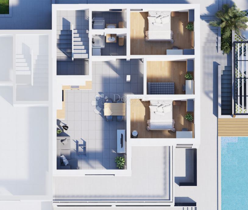 anu pripada i bazen, okućnica od 100 m2 , te 2 parkirna mjesta .