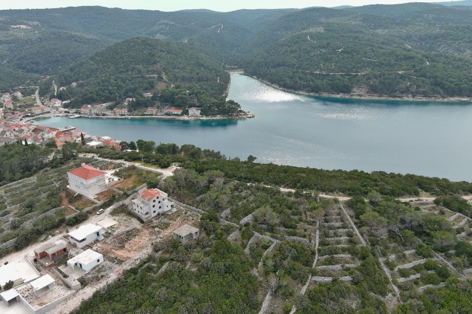 For sale: Building land with an area of 800m2 and a regular shape in the town of Povlja on the island of Brač, in an area known as Brdanjak.