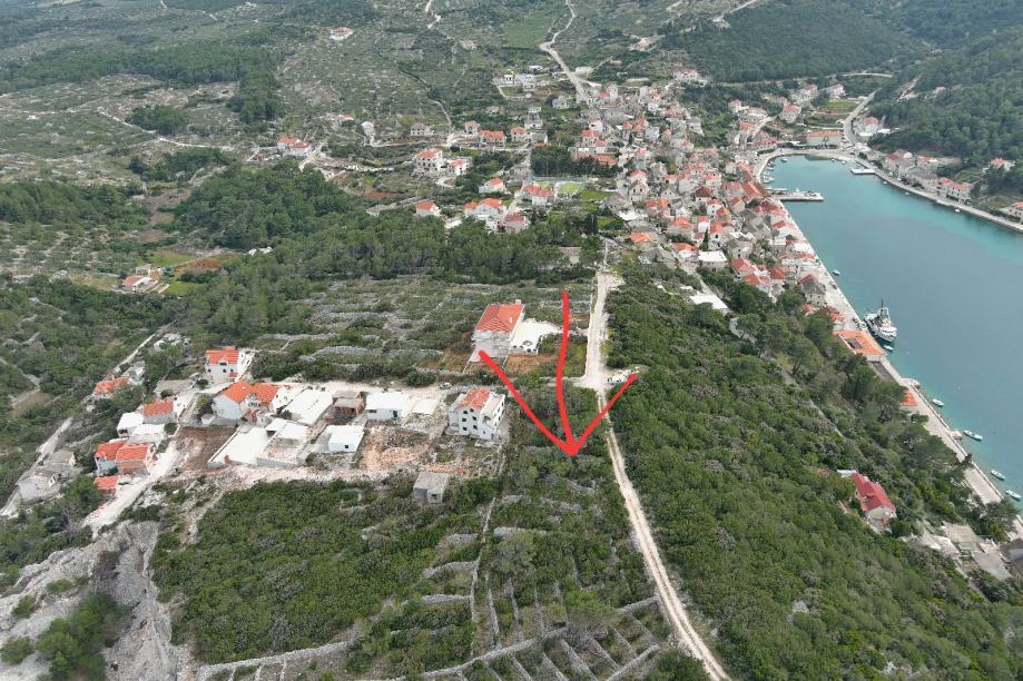 Zum Verkauf: Bauland mit einer Fläche von 800 m² und regelmäßiger Form in der Stadt Povlja auf der Insel Brač, in einem Gebiet namens Brdanjak.