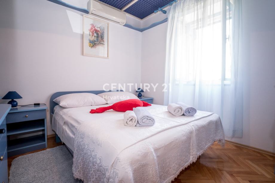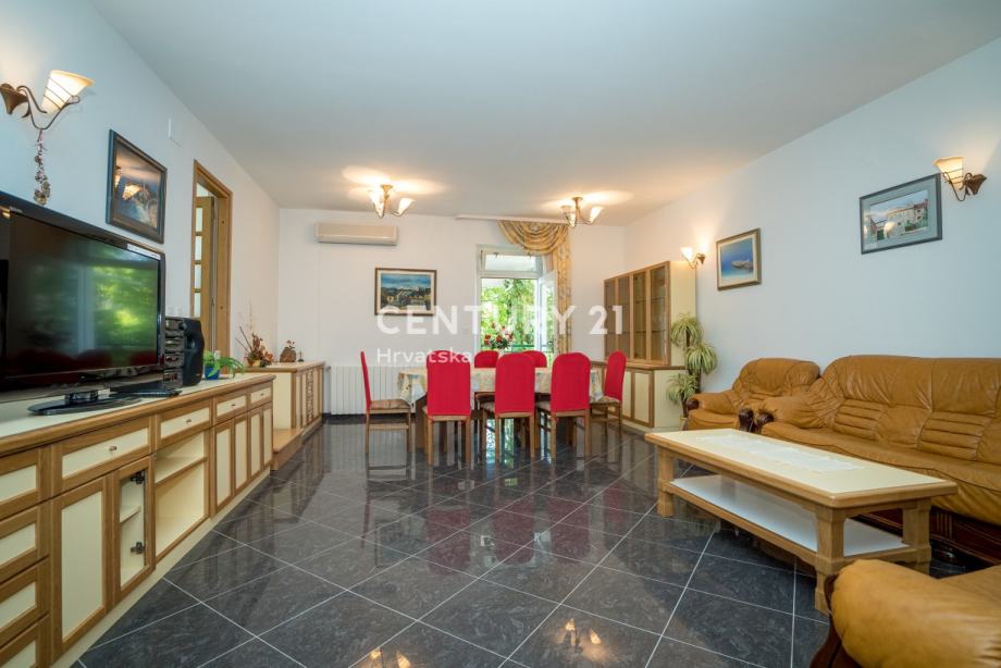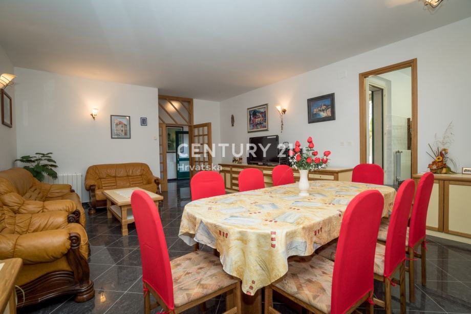 U srcu mirne i sunčane lokacije, smještena je ova kuća u nizu sa svojom prostranom površinom od 250 m2. Ova šarmantna nekretnina nudi tri spavaće sobe, dvije kuhinje, dva dnevna boravka, dva kupatila sa wc-om i jedan zasebni wc. Ponudu upotpunjavaju i dva parkirna mjesta u garazi koja su i te kako bitna pogotovo u ljetnim mjesecima.