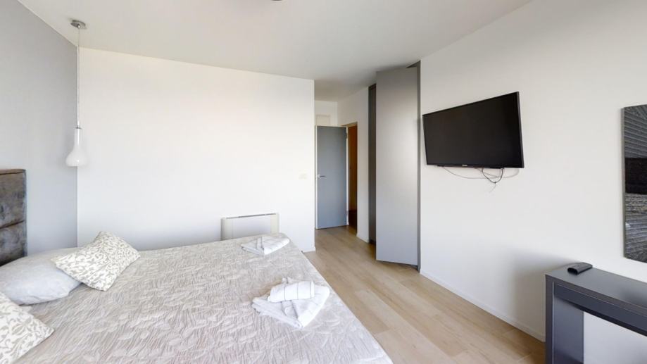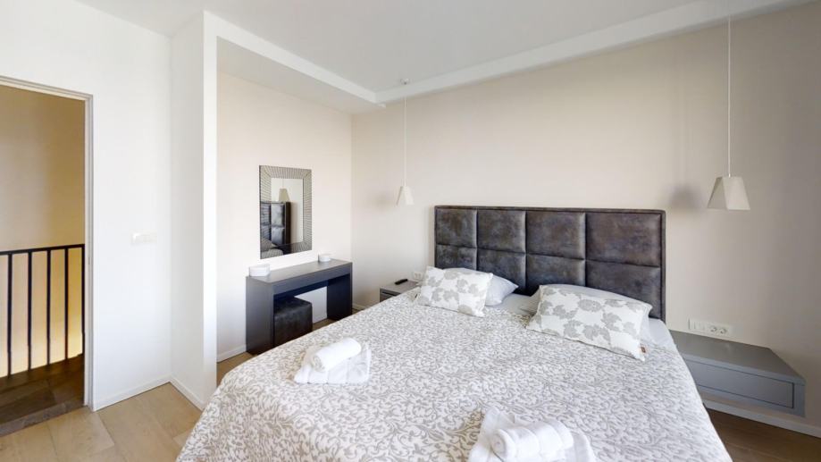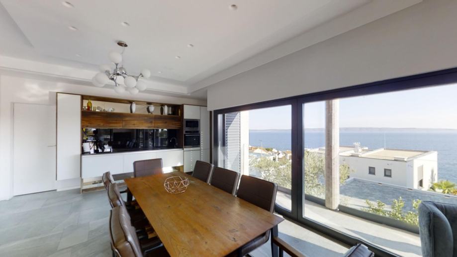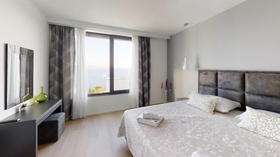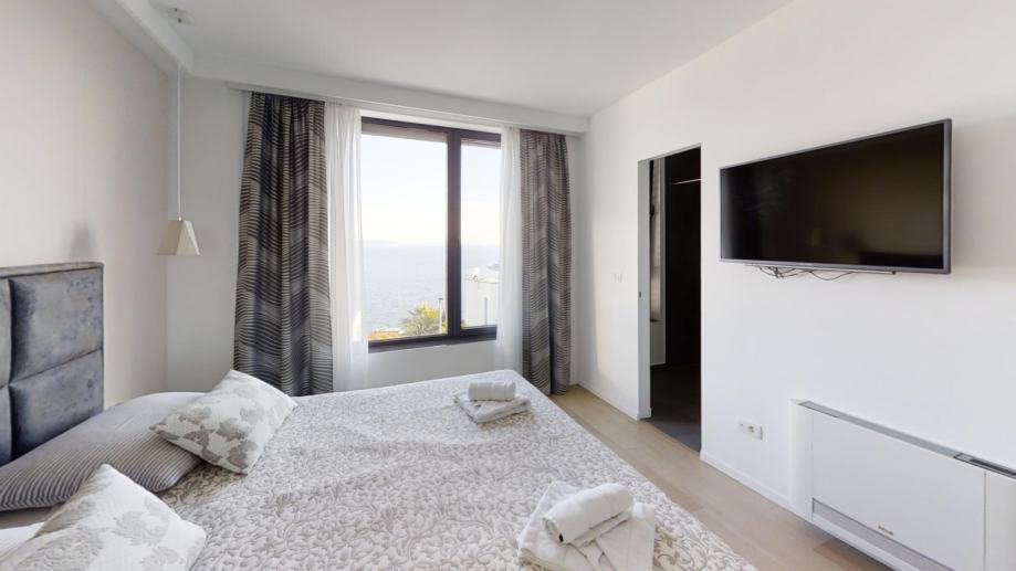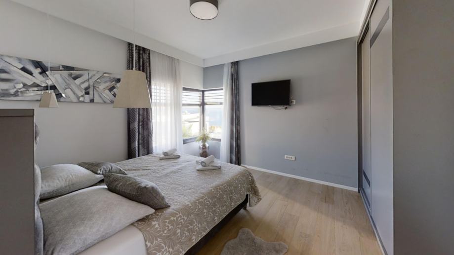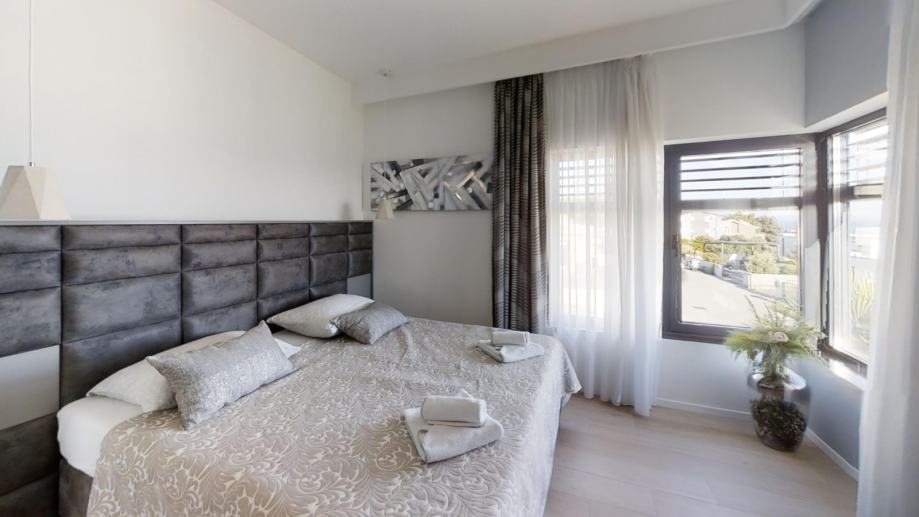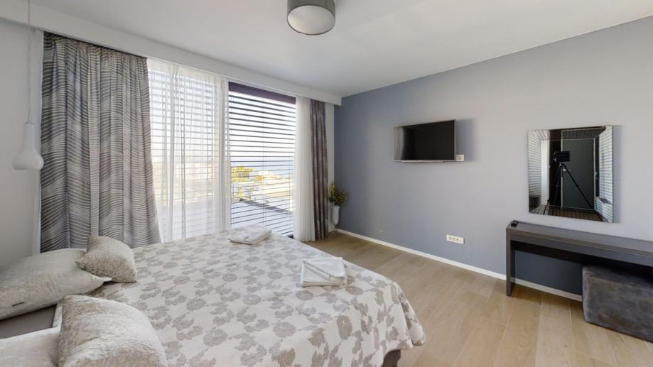 Luksuzna vila izgrađena je 2018. Godine. Nalazi se na vrlo aktraktivnoj lokaciji te ima otvoren pogled na more iz većine prostrorija. U prizemlju je smještena zatvorena garaža, sauna, jacuzzi, teretana, kupaonica te praonica rublja. Na prvom katu nalazi se kuhinja, blagovaonica te dnevni boravak iz kojeg se izlazi na prostranu terasu na kojoj se nalazi bazen te ljetnja kuhinja. Sa terase se pruža otvoren pogled na more. Osim navedenog, na prvoj etaži se nalazi jedna spavaća soba sa pripadajućom kupaonicom te dodatna kupaonica. Na drugoj […]