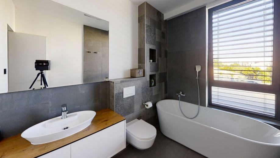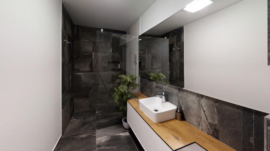 Osim navedenog, na prvoj etaži se nalazi jedna spavaća soba sa pripadajućom kupaonicom te dodatna kupaonica.