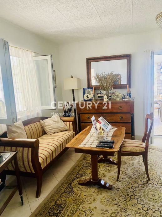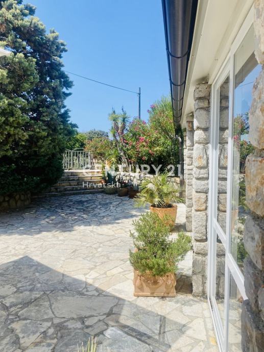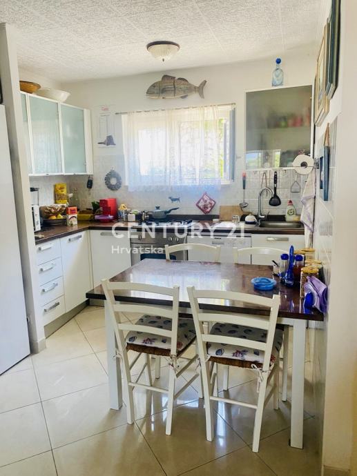 Kuća prizemnica površine 135 m2, i okućnica 500 m2, sastoji se od ulaznog hodnika/komunikacije, kuhinje sa blagavaonom, dnevnog boravka, dvije spavaće sobe, kupaone, wc-a, velike zatvorene lođe koja je ostakljena sa pogledom na more.