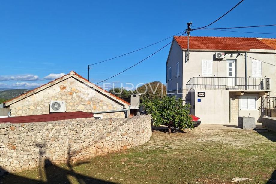 Otok Drvenik Mali, autentična dalmatinska kamena kuća površine 125 m2, razvedena na dvije etaže, s velikim dvorištem te vrtom, smještena u mirnoj ulici, na 300 m od mora.Sastoji se od prizemlja i prvog kata koji su povezani unutarnjim stepenicama.U prizemlju se nalazi veliki dnevni prostor,...