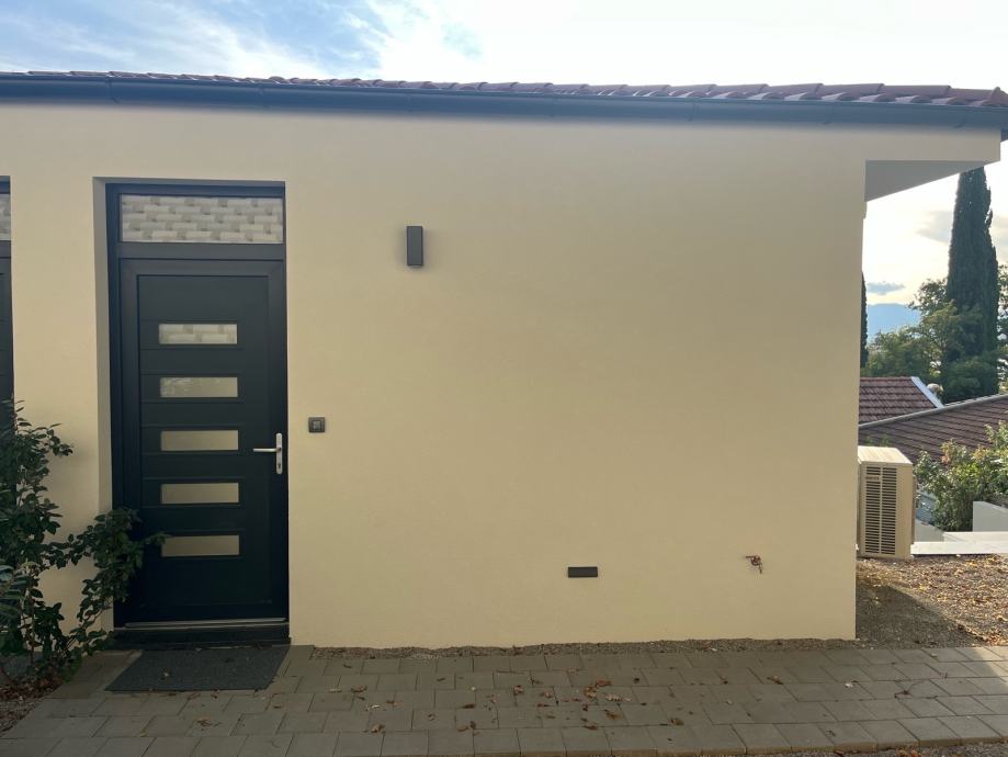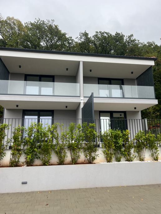 Trosobni apartman u prizemlju sa okućnicom i bazenom te pogledom na more, vrhunski opremljen.