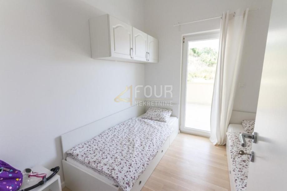 Dnevni dio ima direktni izlaz na okućnicu, grijani bazen sa sunčalištem, natkrivenu terasu i roštilj.