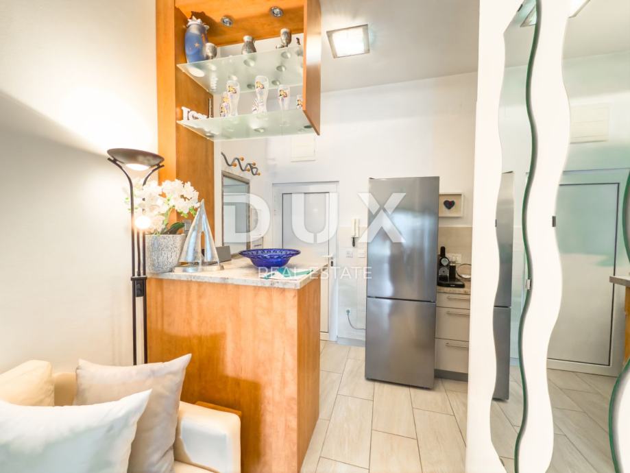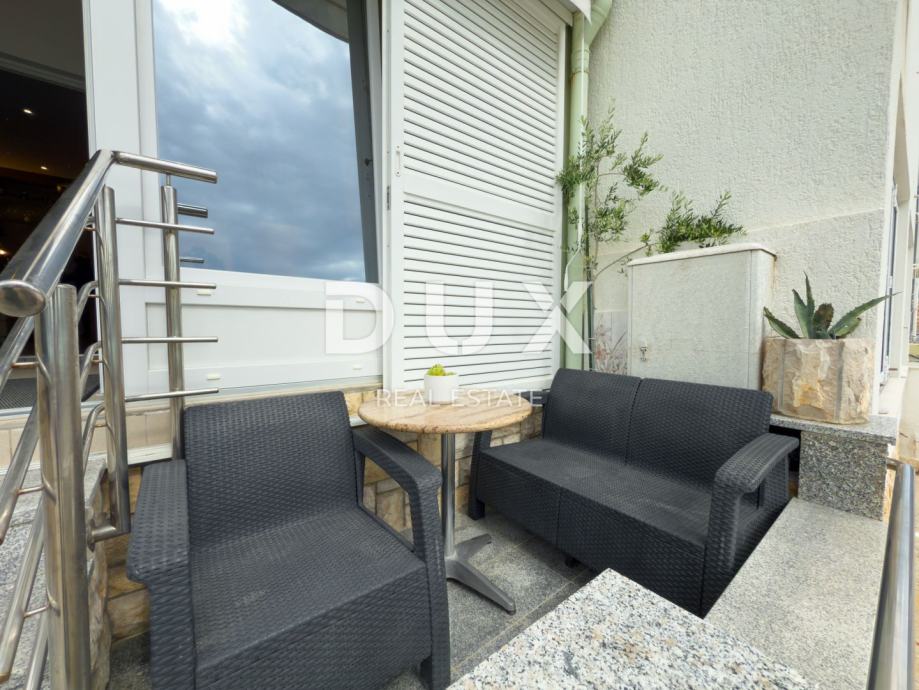 Lođa, zamišljena kao produžetak dnevnog boravka, uređena je s izuzetnim stilom i pažnjom – postaje središnji prostor svakodnevice, s nesmetanim pogledom na more koji oduzima dah. Unutrašnjost stana krasi ambijentalna rasvjeta sa zvjezdanim nebom na stropu, stvarajući jedinstvenu atmosferu opuštanja u svako doba dana.