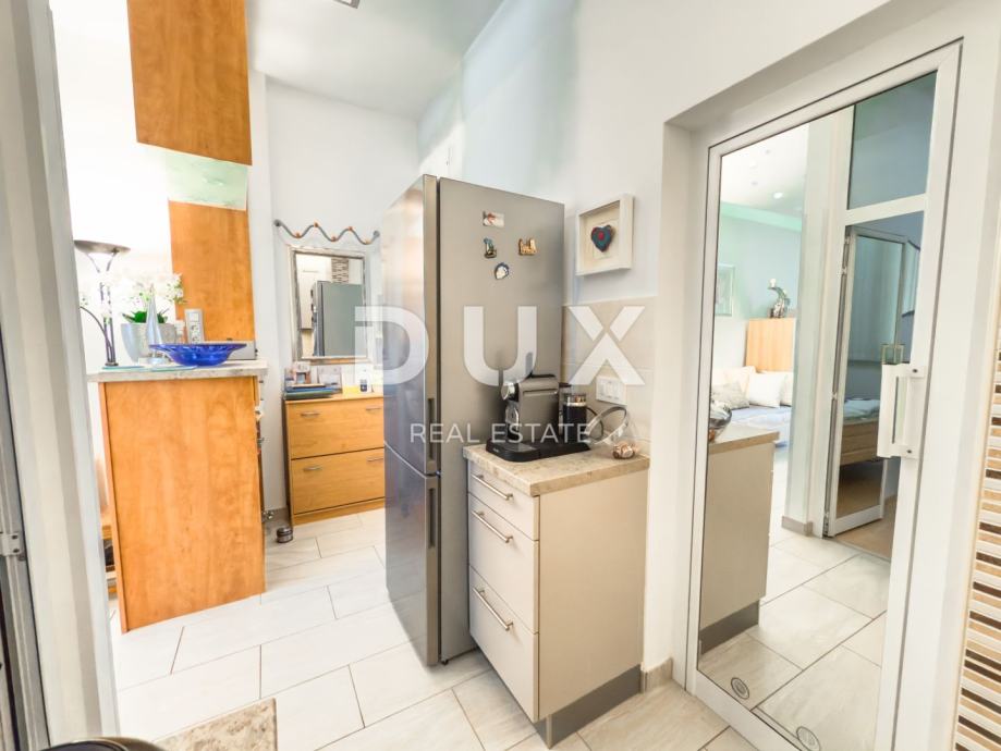 Kuhinja je izrađena po mjeri, kvalitetna i moderna, potpuno funkcionalna i skladno uklopljena u prostor, s naglaskom na estetiku i praktičnost. Svaki kutak prostora ispunjen je prirodnim svjetlom, a toplina interijera dodatno naglašava dojam ugode i doma.